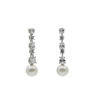 125,00 €Pendientes largos de novia en plata con circonitas y perla 19820PE