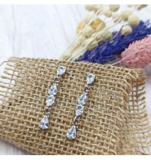 Este modelo juega con tallas de circonita menos habituales como son la forma de pera y radiante , todas ellas calidad 5A RS,que los hace realmente especiales